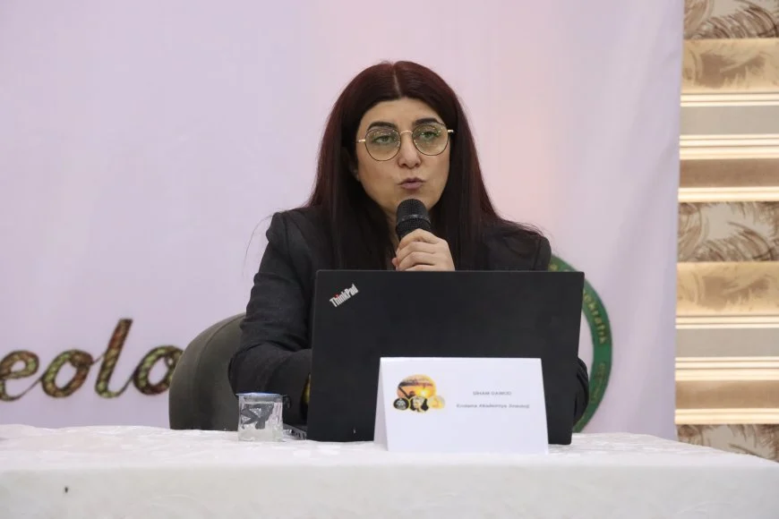 وناقشت سهام داوود الموضوع في إطار الأسئلة التالية: “لماذا أدرج القائد عبد الله أوجلان على جدول أعمالنا هذه الطبقات الأربعة؟” و “ما تأثير الثقافات الأربعة على موضوع تاريخ المرأة؟”، وشرحت سهام الموضوع من خلال مقطع مصور وصور ذات صلة.