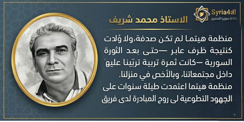 هيتما لم تكن صدفة، ولا وُلدت كنتيجة ظرف عابر — حتى بعد الثورة السورية — بل كانت ثمرة تربية تربّينا عليها داخل مجتمعاتنا، وبالأخص في منزلنا.
