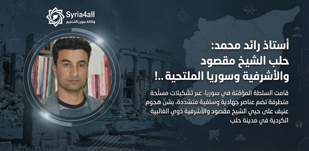 قامت السلطة المؤقتة في سوريا، عبر تشكيلات مسلّحة متطرفة تضم عناصر جهادية وسلفية متشددة، بشنّ هجوم عنيف على حيي الشيخ مقصود والأشرفية ذوي الغالبية الكردية في مدينة حلب، مستخدمة مختلف أنواع الأسلحة المتاحة لديها، ما أدى إلى استهداف مباشر للمدنيين وتهديد السلم الأهلي.